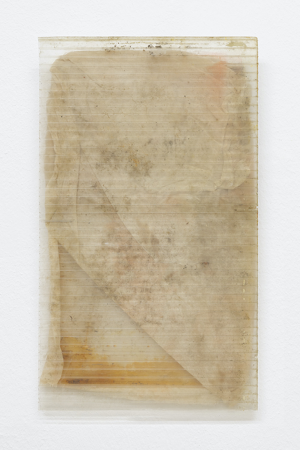 Rost, Sedimente, LKW-Planen, Polycarbonatplatten – Materialien, die sich oftmals unserer Aufmerksamkeit entziehen oder deren Zeitlichkeit wir übersehen, sind zentraler Bestandteil von Kelly Weiss‘ künstlerischer Arbeit. Diese sammelt Weiss auf Spaziergängen durch urbane und industrielle Räume und setzt sie später jeweils in direkten Bezug zu Raum, Umgebung und Bedingungen ihrer Ausstellungsorte.