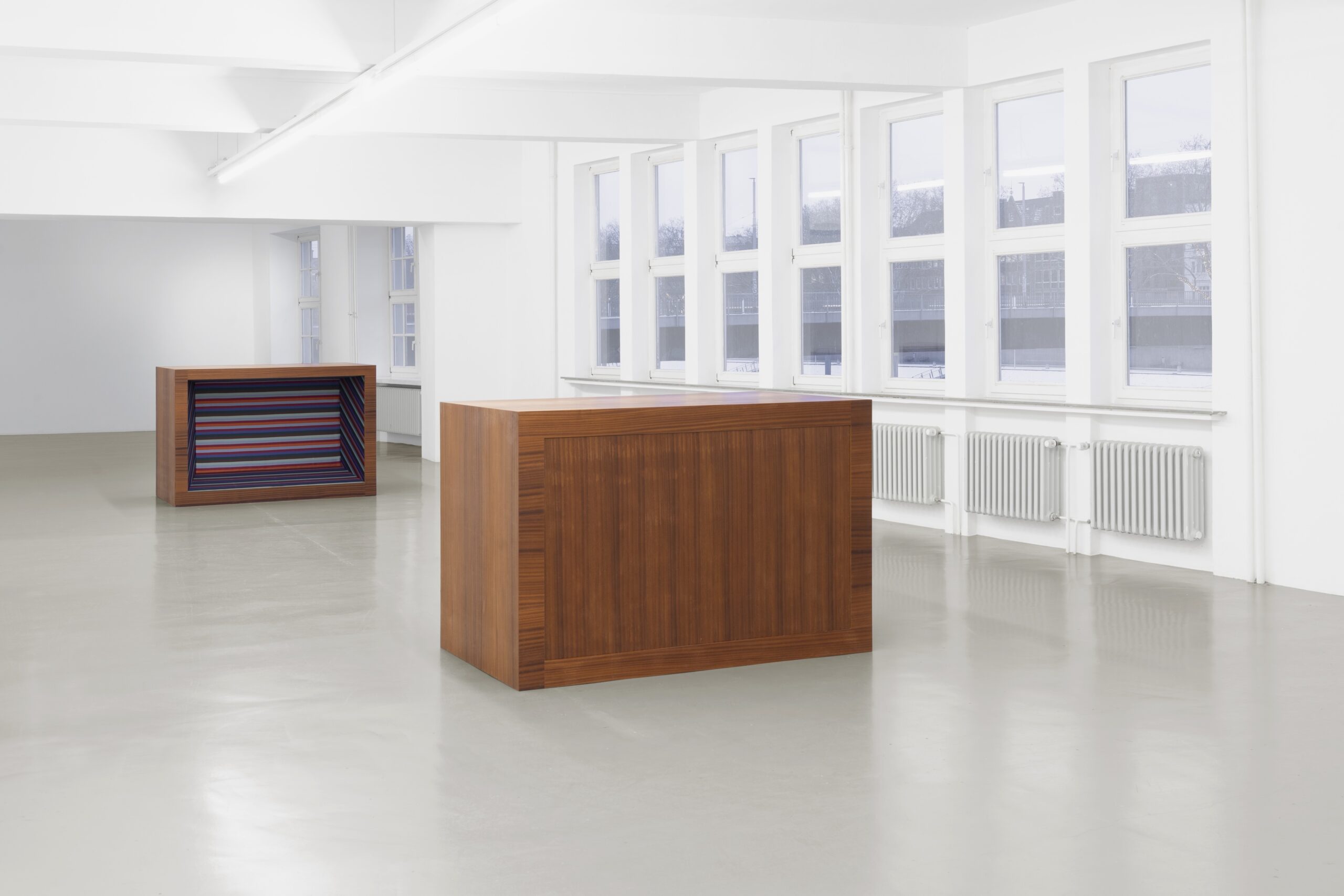 Aus vermeintlichen Zusammenhängen entstehen in Mara Wohnhaas‘ Arbeiten Beziehungen, in denen die Zirkulation und Relativität von Wissen, Vernunft, Wahrheit und Schein verführerisch und humorvoll kollaborieren. Sie spiegeln ein in sie hineingelegtes Begehren und übertragen es in Form und Material. Während die Objekte in What do we want that seduces us klar und geometrisch abgegrenzt sind und das Innenleben verborgen bleibt, drängt sich in The Anecdote der subjektive Blick als Schnittstelle zwischen Innen- und Außenleben buchstäblich ins Bild und verunklart die Ränder. Diese Aufhebung der gedanklichen Trennung zwischen Psychologie und Empirie, dem Unsichtbaren und dem Sichtbaren, Vorstellung und Faktischem bezieht sich dabei ebenso auf künstlerische Praxis wie auf die Beziehung zur Umwelt sowie die Kommunikationsformen und Medien, die sie prägen.