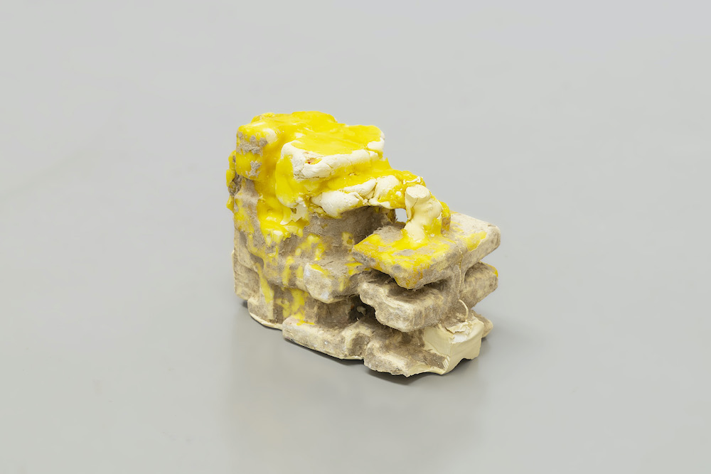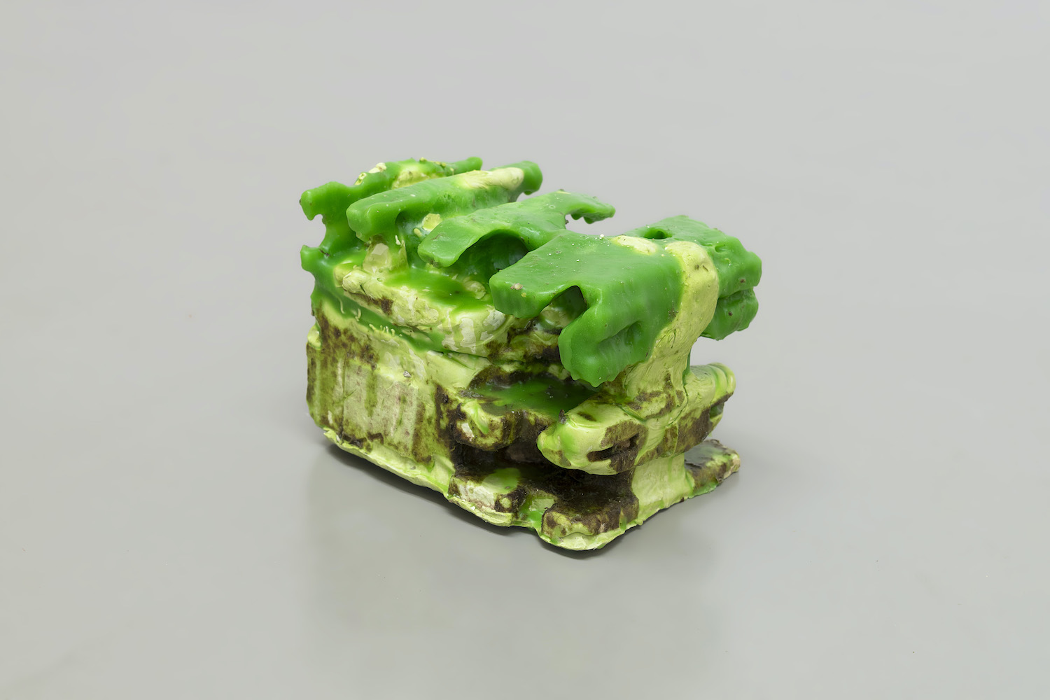 Klaartje van Essen works with materials such as plaster and wax, which she pours, layers, and applies until fragile, painterly, and sculptural forms emerge. For her annual edition, which is part of the Distributors series, van Essen mixes warm, liquid wax together with cold plaster and pours it into Styrofoam and cardboard packaging; these molds are leftovers that she finds in public spaces or at her studio and then recycles. When the two materials meet, they react to each other: they repel, connect in some parts, and solidify into a form that is neither entirely planned nor completely random. Each work is the unique result of a short yet intense process.
